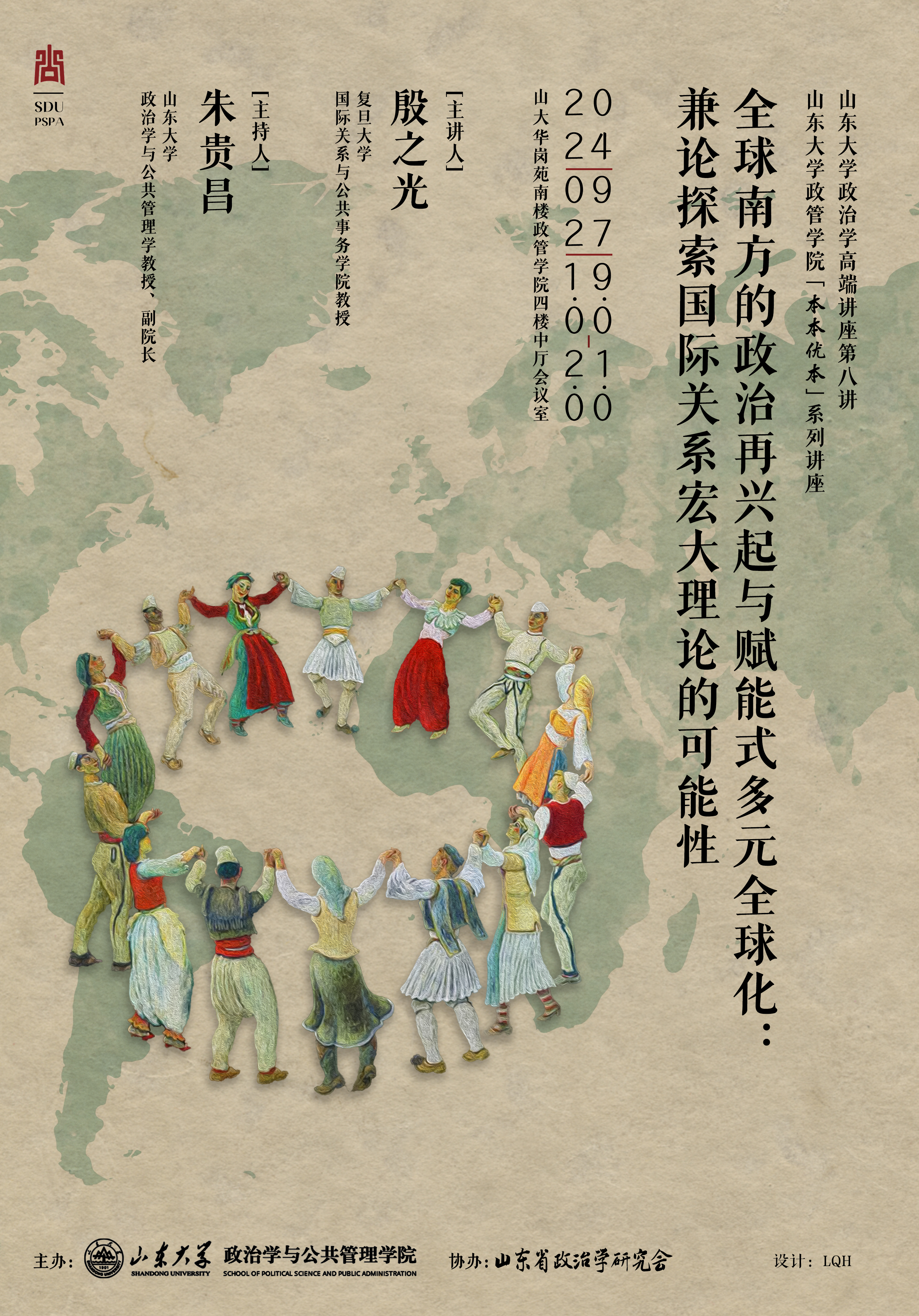 讲座主题:全球南方的政治再兴起与赋能式多元全球化:兼论探索国际关系宏大理论的可能性