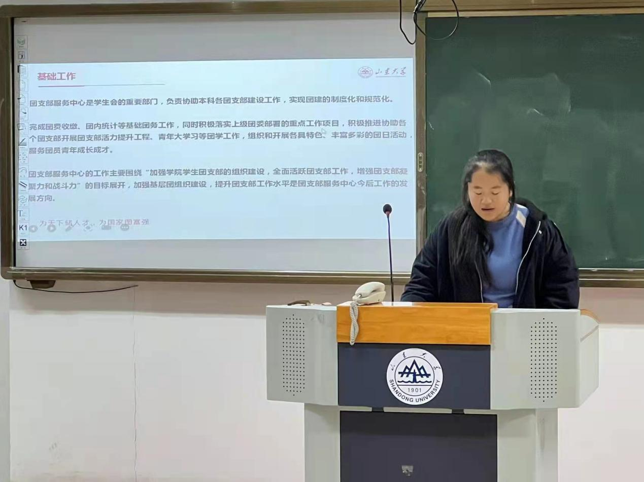 学生会团支部服务中心解依桐对团支部服务中心的工作和职能进行了系统介绍。解依桐指出,团支部服务中心紧紧围绕“加强足球比分90