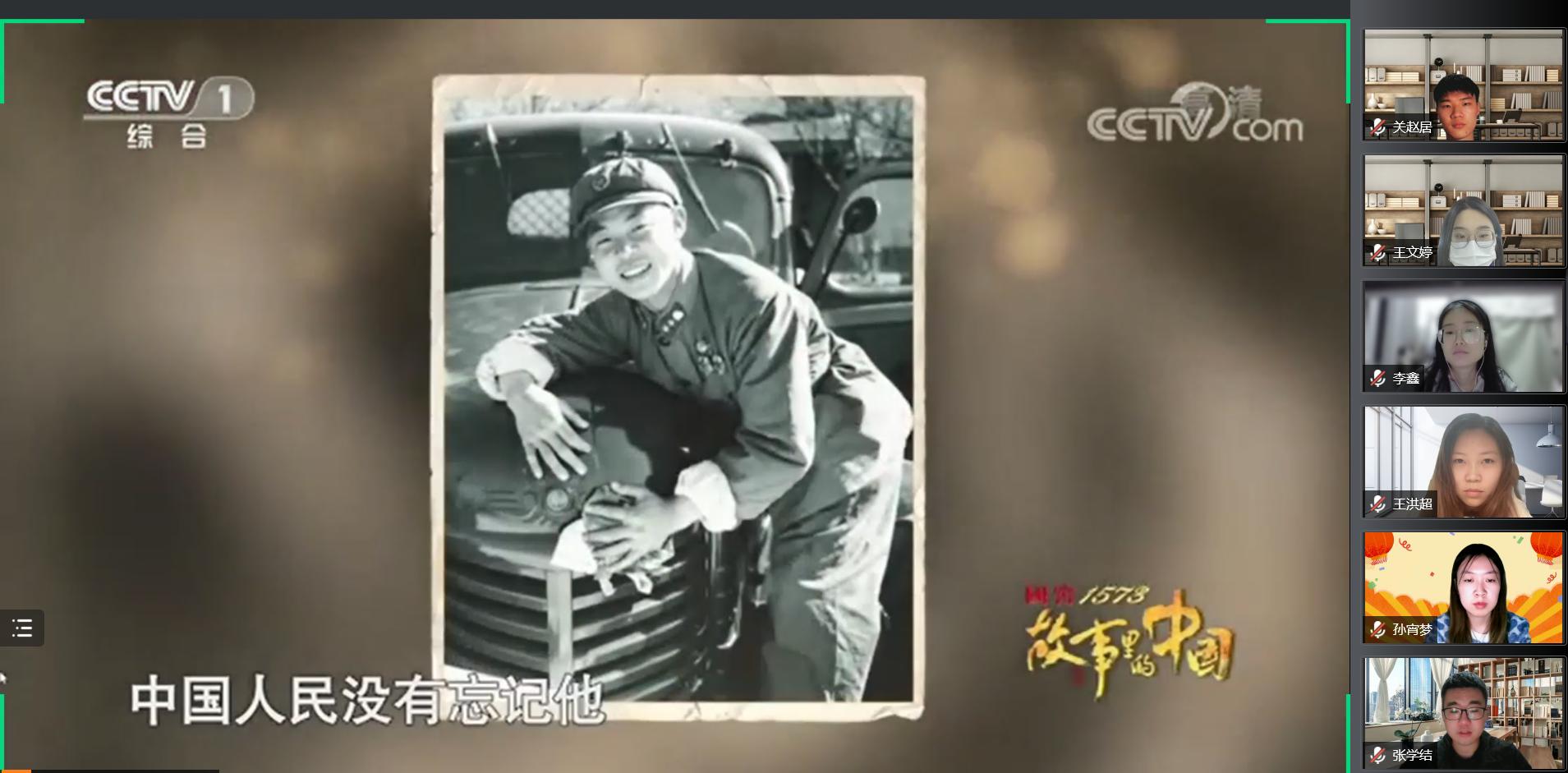 此次活动分为三部分,第一部分为线上观影环节。参与同学共同观看了《故事里的中国》——雷锋专题节目,节目中,当年帮助雷锋入伍的老红军余新元政委带领众人重回半个多世纪以前,为大家讲述了一个个真实鲜活的雷锋故事,让同学们真切感受到了在“无限的为人民服务中”实现“平凡的伟大”的雷锋精神。
