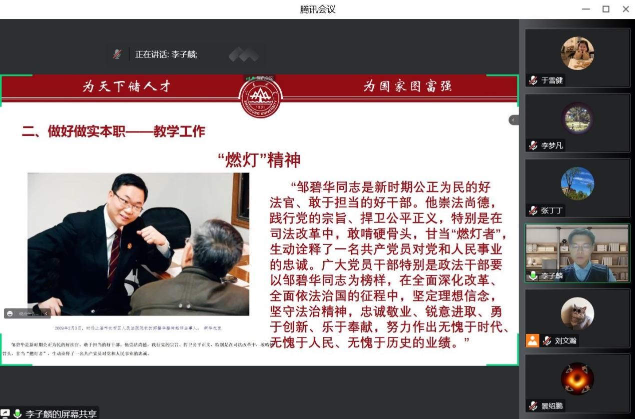 法学硕士第一党支部五个支部联合开展“砥砺奋斗守初心,青春献礼新时代”主题党日活动,邀请榜样模范交流座谈,共同进行理论学习,以实际行动迎接党的二十大胜利召开。活动由足球比分90