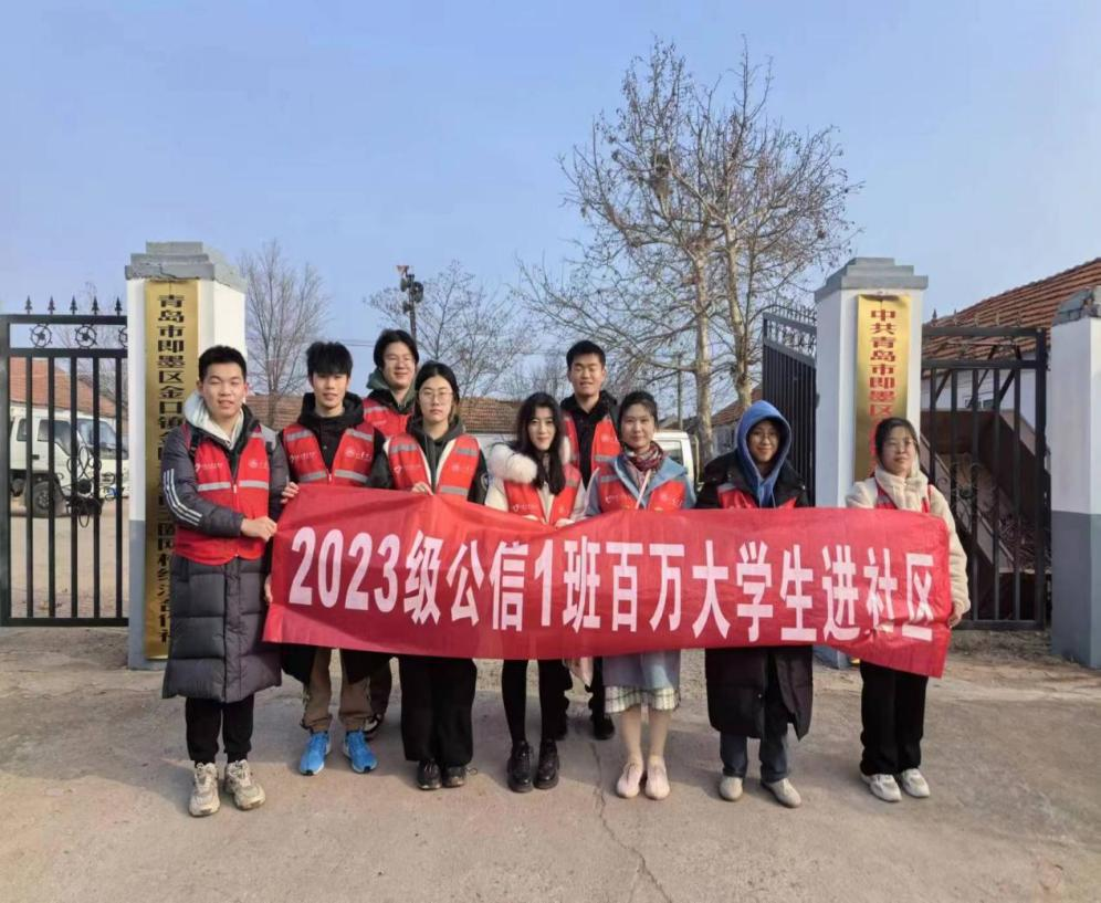 2023级公信1班团支部前往青岛市即墨区金口镇西王圈社区,围绕红色宣讲、水库调研、志愿服务等开展“百万大学生进社区”社会实践活动,帮助学生深入社会、服务人民群众、增强时代责任,为社区及成熟发展注入青春力量。