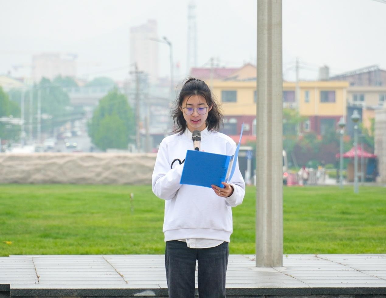 紧接着,青年学生代表朗诵了爱国诗歌《青春中国》,从清末史书、《南京条约》里消瘦、软弱的旧中国,诵至犹如惊雷般觉醒、在党的领导下誓要书写崭新中国的先辈青年,再至继往开来、前赴后继地以无悔青春谱写对新中国爱之诗篇的当代青年,以真挚的情感和激昂的语言,表达了对奋斗青年的无限赞美和伟大祖国的美好祝福。