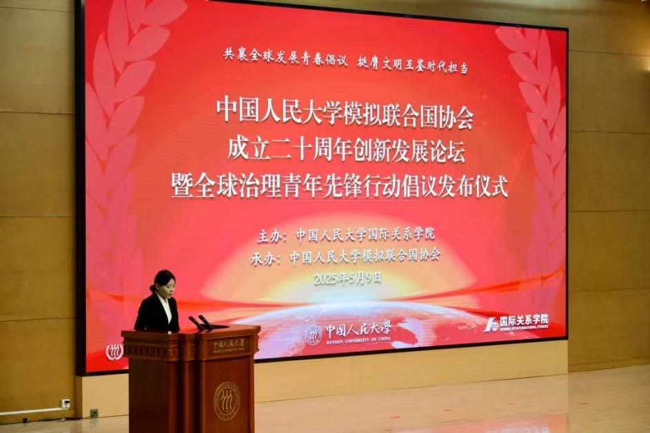 近日,山东大学学生模拟联合国协会代表团受邀参加第二十届中国人民大学模拟联合国大会,并作为友好社团出席中国人民大学模拟联合国协会二十周年创新发展论坛暨“全球治理青年先锋行动倡议”发布仪式,本次大会汇聚全国多所高校代表及青年学子,围绕“当前全球治理的机遇与挑战”展开深度对话,旨在共绘全球治理青年行动新蓝图。