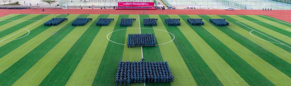 的方队整齐划一,同学们佩戴着洁白的手套、迈着有力的布伐、踢着标准的正步,依次通过主席台,接受部队领导和校领导的检阅,获得了各位领导的认可和赞许。近20天的辛苦和汗水,在这一刻都化作鲜花和掌声,新生们在这绿茵场上,完成了从稚嫩迷茫到坚定勇敢的蜕变。