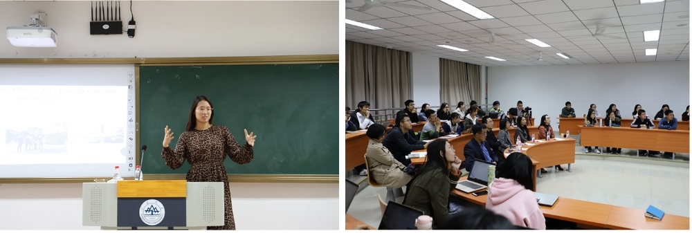 Jerrica首先从她成长的家庭环境谈起。父亲是篮球运动员,母亲是游泳运动员,Jerrica除了继承了他们的运动天赋外,还继承了对体育运动的热爱,并通过自己不懈努力荣获2018 Ivy Swimming Champion,于她而言运动已成为生命过程中不可分割的一部分。同时Jerrica还与大家分享了她进入哈佛之前的教育经历,用生动有趣的图片为我们展示了在美国生活学习的各种细节。然后Jerrica与大家重点交流了她在哈佛学习的一些看法与体会。其一是关于通才与专才。作为世界一流的大学,哈佛不仅要求学生注重通识课程的学习,努力拓宽其知识面,同时也要求学生在特定领域不断精进,深化对专业知识的理解。Jerrica认为无论是通才还是专才的学习都是有朝一日为知道我们想成为什么样的人而努力准备的。其二是关于自我规划,对未来也曾迷茫的Jerrica坦言“Have a gap year”就是让自己快节奏的生活“按下暂停键”从而有更充裕的时间思考“我要成为什么样的人”,让世界等我们一会是为了更好的整装待发。