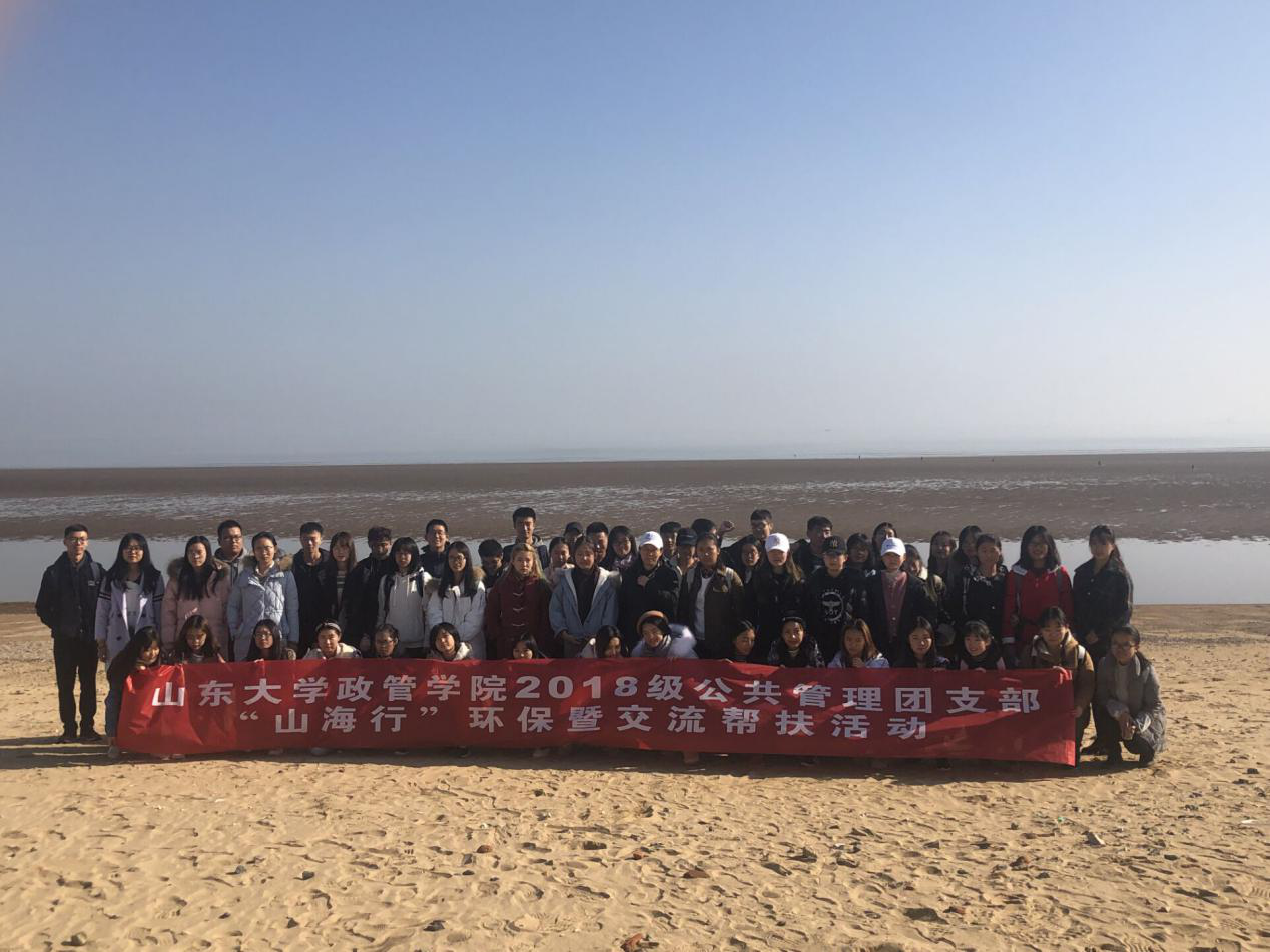 2018级公共管理团支部“山海行”环保暨交流帮扶活动在山东大学青岛校区东门外海滩顺利举办。