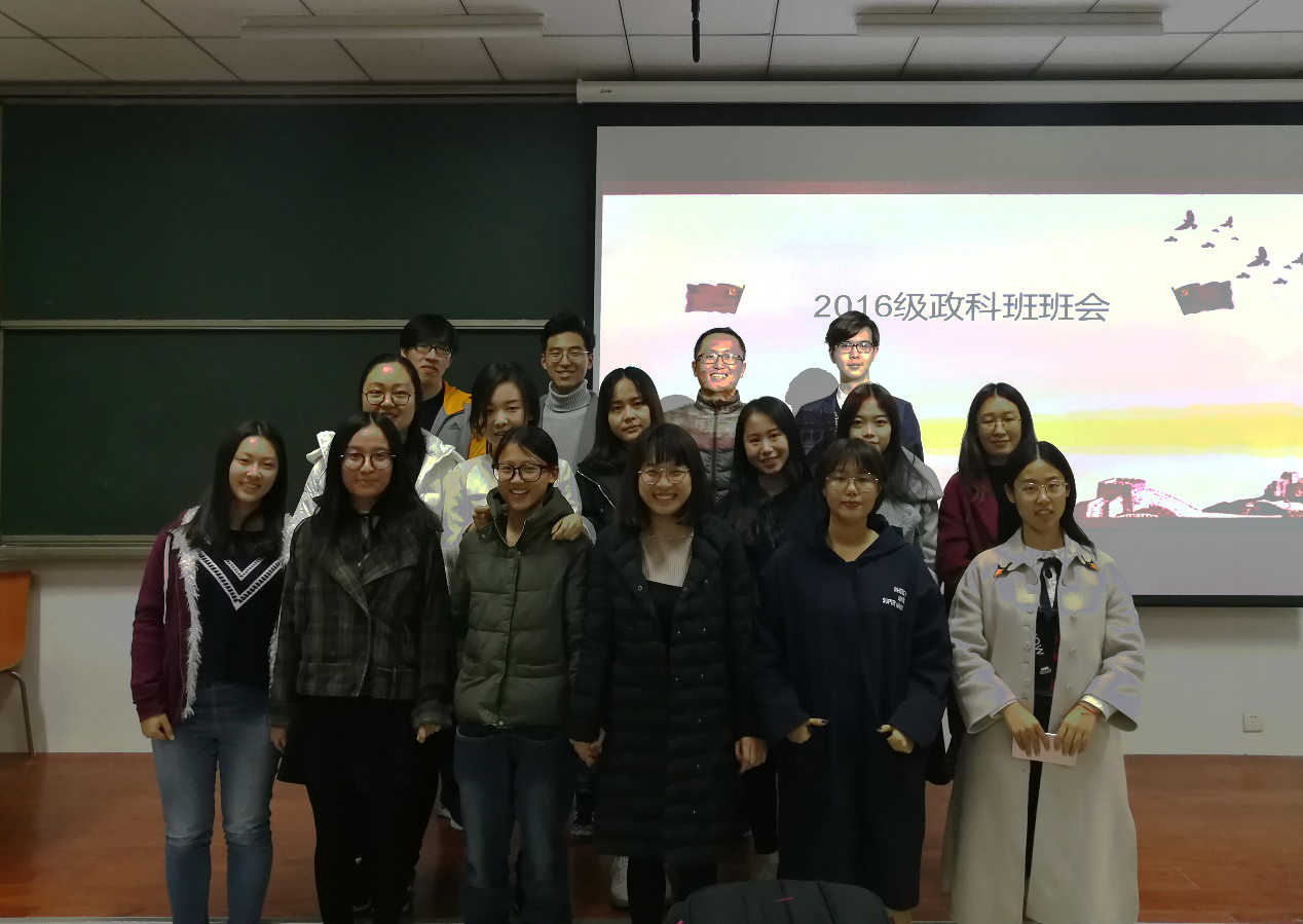 2016级政科班在N108举办教学实习交流班会。11月初政治学与行政学专业的同学由兰华老师带队,赴济南进行教学实习,重点参观中心校区、洪家楼校区和兴隆山校区。11月中旬科学社会主义专业的同学由吕连仁老师、赵婷老师带队,赴威海进行教学实习,重点参观威海的党建基地和爱国主义教育基地。班会由政科班全体同学参加,班长杨静轩主持。