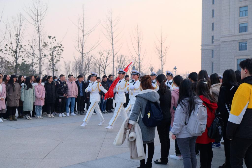 早上7点15分,英姿飒爽、着装整齐的国旗班护旗手带队从图书馆出发,护着国旗入场。迎着朝阳,旗手们迈着矫健铿锵的步伐,护送鲜艳的五星红旗,展现了团结进取、积极向上的精神风貌。伴着《义勇军进行曲》的响起,全体行注目礼,怀着对祖国的无限热爱与对国旗的尊重,团员们跟唱国歌,情绪高涨。