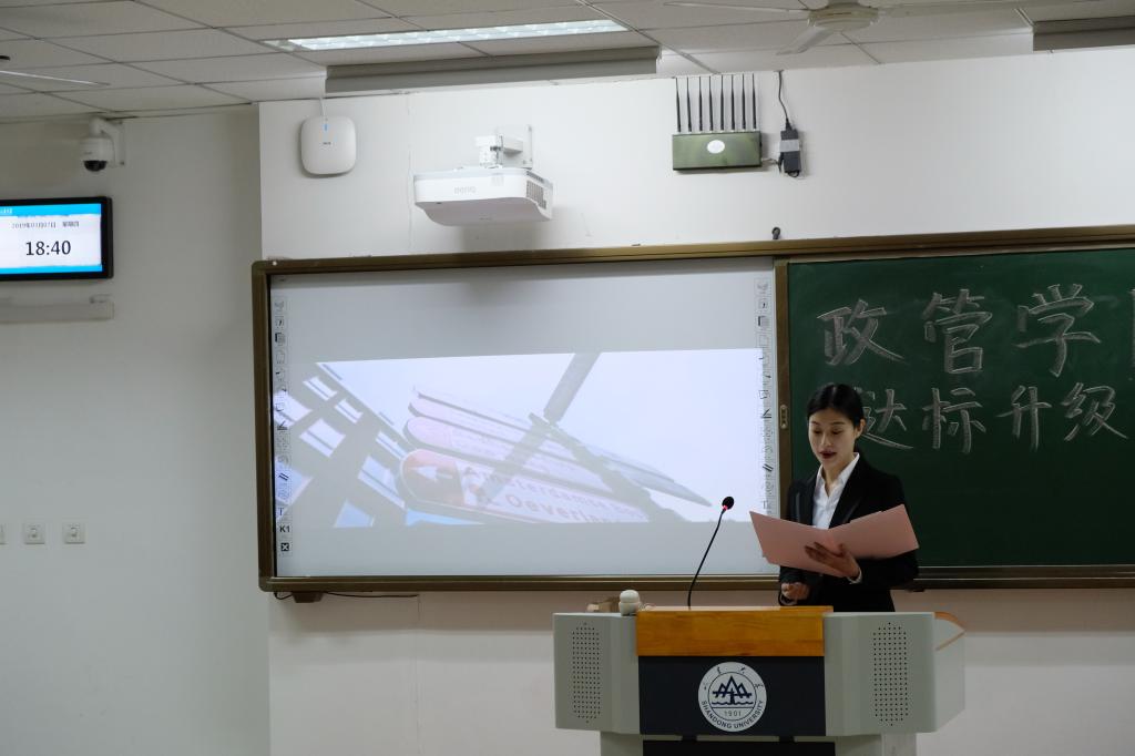首先,2016级国际政治班团支部进行答辩,他们以“无问西东”为主题,阐释了其思想、热爱、初心与深情。2016级政科班团支部以PPT展示的形式总结其支部的工作,团结温暖的支部氛围给评委和观众们留下了深刻印象。2016级行政管理班团支部运用快闪的新颖形式,将工作成果一一展示,吸引了各位评委和观众的注意力。其后,2016级公共管理班团支部对其工作的成果与不足之处进行了总结,展现了其团支部严谨作风和认真的工作态度。2017级政治班团支部将优美的古诗与人、事、情相关联,绘出独一无二的支部风采,让人耳目一新。其他团支部也就其各方面工作进行展示,顺利完成答辩。