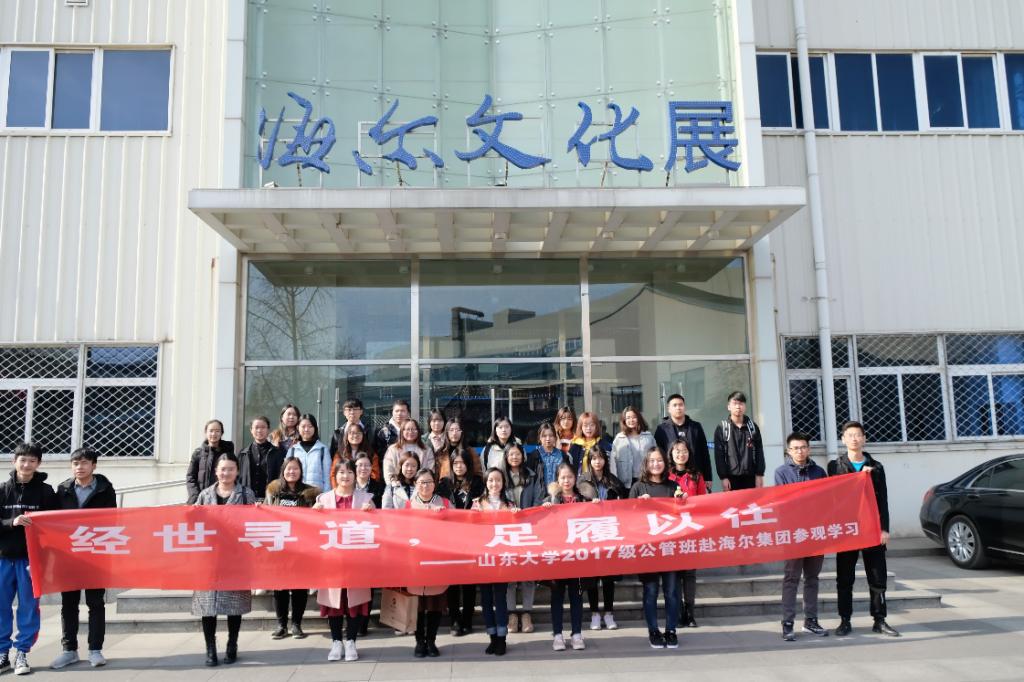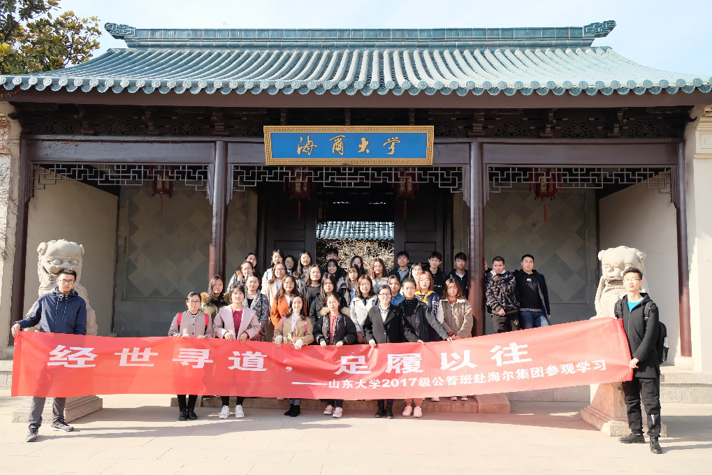 2017级公共管理班的同学们来到了位于崂山区海尔路1号的海尔集团进行参观学习。在集团专职讲解人员的带领下,对“海尔生活馆”、“海尔文化馆”、海尔大学进行了参观。