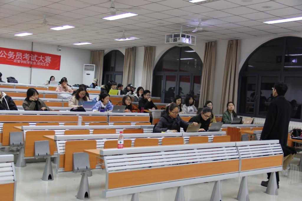 3月17日,模拟公务员考试宣讲培训会在振声苑为大赛拉开序幕,参加人数达到五十多个。联创教育的教授针对当前就业形势、公务员概况,以及公务员考试的相关情形进行了简要介绍,并重点对公考笔试的基本题型给出了详细分析。同学们被教授活泼热情的讲授方式所吸引,积极同教授互动,更进一步促进了大家对公务员考试的了解。