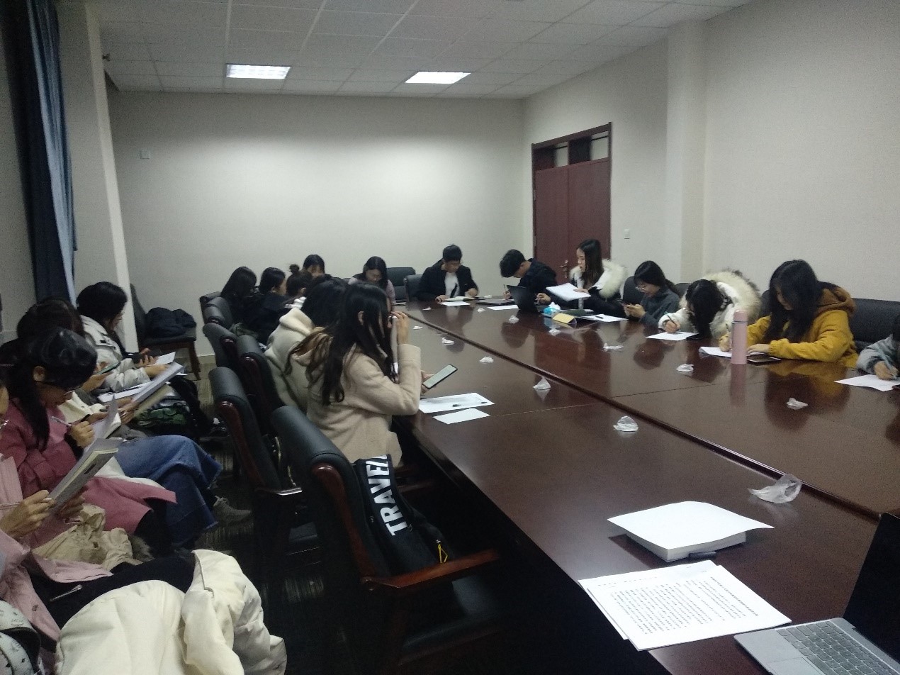支部成员共同学习十九届四中全会公报,高洁馨,王亚丰以及杨柯林向大家分享了学习心得,大家共同学习交流后一致认为,中国特色社会主义制度和国家治理体系是经过长期实践检验的符合中国国情的正确选择,我们要紧密联系实际,保持奋斗姿态,强化责任担当,在学习和工作中承担起自己的责任,发挥模范作用。