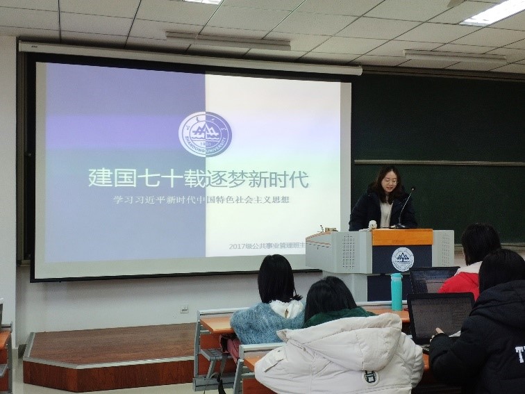 2017级公共事业管理班在振声苑E302举办“成立七十载,逐梦新时代——学习习近平新时代中国特色社会主义思想”主题团日活动。