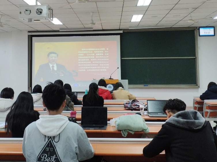 活动开始前,团支书耿易点明团日活动的性质和重要性。开展团日活动的过程,也是支部组织优化的过程,有助于提高支部凝聚力和向心力,加强成员思想道德建设,提升成员整体素质。本次“成立七十载,逐梦新时代——学习习近平新时代中国特色社会主义思想”主题团日活动选取了中宣部会同教育部编写制作的《习近平新时代中国特色社会主义思想三十讲》课件,紧紧围绕习近平新时代中国特色社会主义思想的基本精神、基本内涵、基本要求,采用文字、图片、视频、音频等多种表现形式,内容丰富,观点准确,贴近高校学生的思想实际和工作实际,有助于进一步深化青年团员对习近平新时代中国特色社会主义思想的学习、理解和把握。