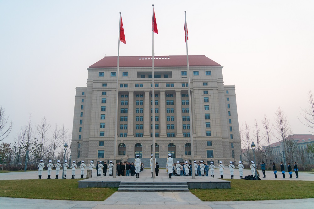 12月9日,青岛校区在育贤广场举行山东大学(青岛)纪念“一二九运动”升国旗仪式。山东大学(青岛)学工部党支部全体成员、青岛校区学生会、研究生会、红色先锋营、大学生国防教育协会部分同学,足球比分90