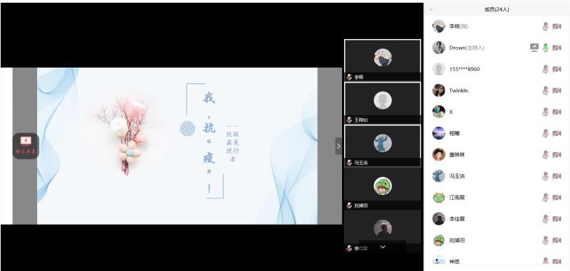 全体同学的一封信》的号召,于3月7日通过腾讯会议组织开展了“抗击疫情,共克时艰”第一次主题团日活动。赵方同学倡议同学们积极学习抗击疫情的先进事迹,发挥好团员先锋作用,为抗击疫情防控工作奉献自己的青春力量。