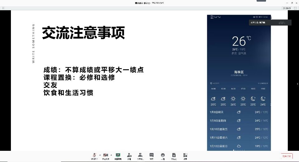 随后,拥有第二校园经历的两位同学分享了自身经历。曾前往中山大学交流学习的常楚言同学就第二校园项目的基本情况、申请流程以及注意事项进行介绍,为同学们如何选择和权衡提出了建议,并且介绍了在中山大学学习、生活的感受。曾前往中国政法大学交流学习的张惠文同学简单对比了两校的学生组织,介绍了中国政法大学的优势所在,分享了交流学习期间的学习生活情况和个人想法。