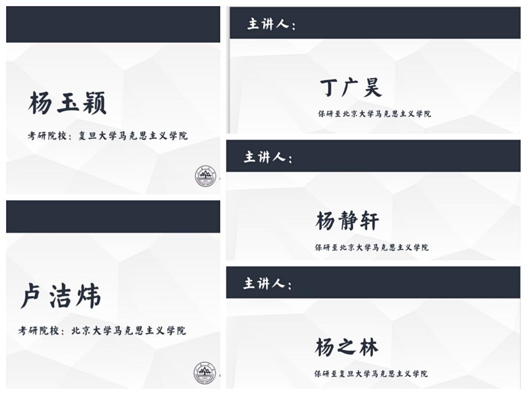 本次交流会主要内容是由大四的学长学姐向低年级的同学们分享学习、生活、保研、考研的一些心得和经验,并进行答疑解惑。会议伊始,杨之林学长、丁广昊学姐和杨静轩学长分别根据自身经验对复旦大学、北京大学保研笔试和面试过程中的一些注意事项作了详细介绍,尤其强调要注意保持良好的心态,增强自信心。此外,他们还根据自身经历分享了一些学习方法,比如要着重于平时积累,不仅要注意知识学习的深度,也要注重拓展知识的广度,并且在学习过程中要具有怀疑精神,敢于争论、勤于思考,广涉猎、勤读书。随后,卢洁炜学姐和杨玉颖学姐分享了考研相关问题的一些经验,贡献了一批有用的考研书籍以及关于心态调整和时间安排等方面的小技巧。学长学姐们无私地将自己的宝贵经验传递给学弟学妹,不仅为低年级学生本科阶段的学习生活和保研考研等提供了参考和借鉴,更体现着科社大家庭里学长学姐们的浓浓关怀和爱意传承,激励着新一届科社学子明晰目标,奋勇前进。