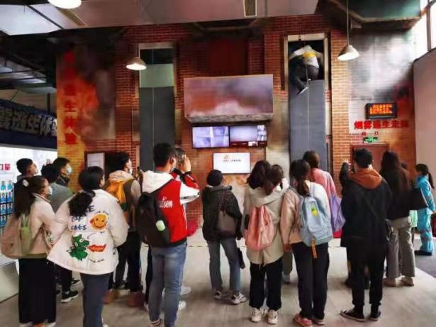 经过一个半小时的车程,同学们于九点半到达青岛市应急安全体验培训中心。在工作人员的带领下,同学们首先了解了海丽雅集团和培训中心的发展历程以及一些应急安全设施在航空航天、海洋准备等领域的应用。
