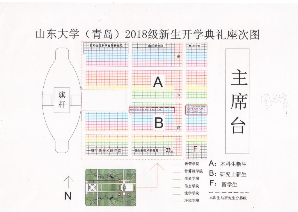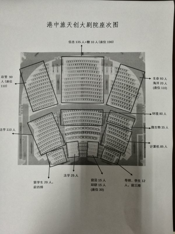 我院新生在天创剧院二层就坐(进大门后直接上楼),本科生在前,研究生在后,座次图如下(复制图片地址新窗口打开查看大图):