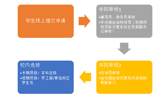 经过前期的调试,学生海外经历项目管理系统已经正式上线,目前可实现济南和青岛校区本科生的线上校内报名、选拔。请各单位及时登录系统,做好学生报名材料的受理、审核等工作,具体通知如下: