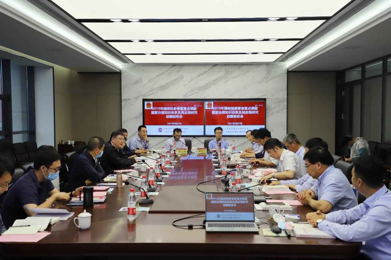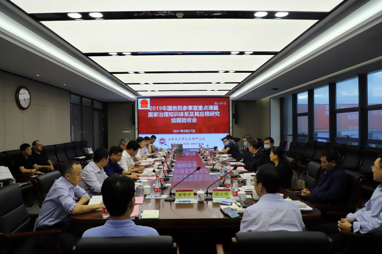 9月27日,2019年国务院参事室重点课题“国家治理知识体系及其应用研究”结题验收会暨山东大学国家治理研究院工作座谈会在青岛校区华岗苑南楼五层中厅举行。国务院参事室特约研究员邱进(副部长级),参事业务二司司长孙维佳,参事业务二司调研处处长郭良玉,山东大学党委常委、常务副校长王琪珑教授,评审专家山东省委党校科学社会主义教研部主任张传鹤教授,中国海洋大学国际事务与公共管理足球比分90