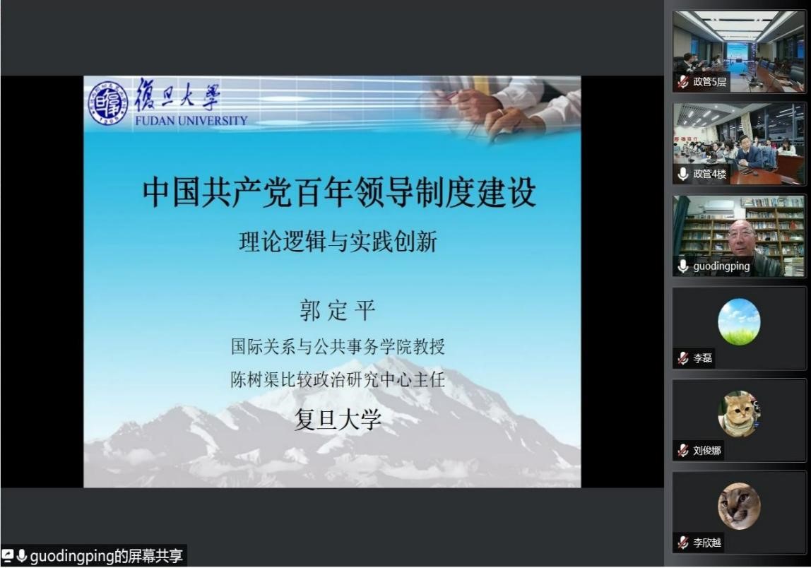郭定平教授应邀作了题为“中国共产党百年领导制度建设的理论逻辑与实践创新”的线上讲座。讲座由足球比分90-即时比分90