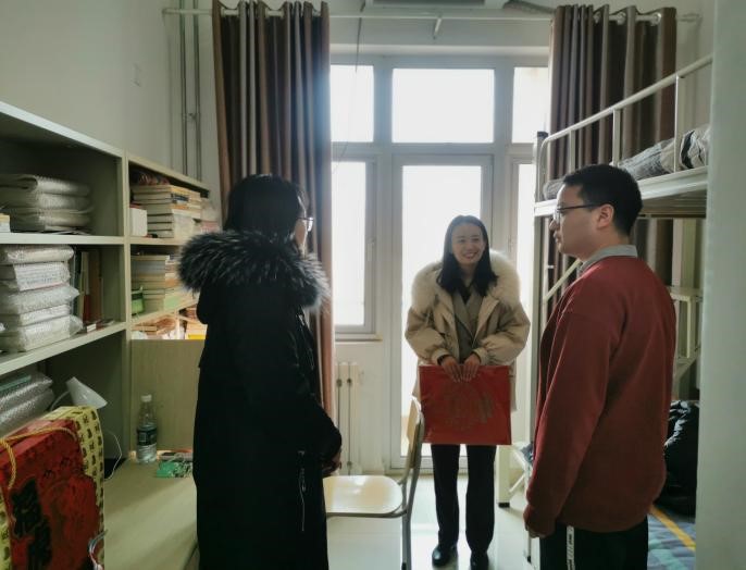 高度重视寒假留校学生的思想引领、心理疏导、安全教育和服务保障工作,坚持精细化原则,通过谈心谈话、走访慰问、安全教育宣传等途径,关心关爱留校学生的学习、生活和思想动态,及时解决同学们的困难与诉求,并通过赠送节日礼包、师生贴对联等举措,确保寒假留校学生能够感受到过年的温暖,度过一个平安、温馨、充实、有意义的春节。
