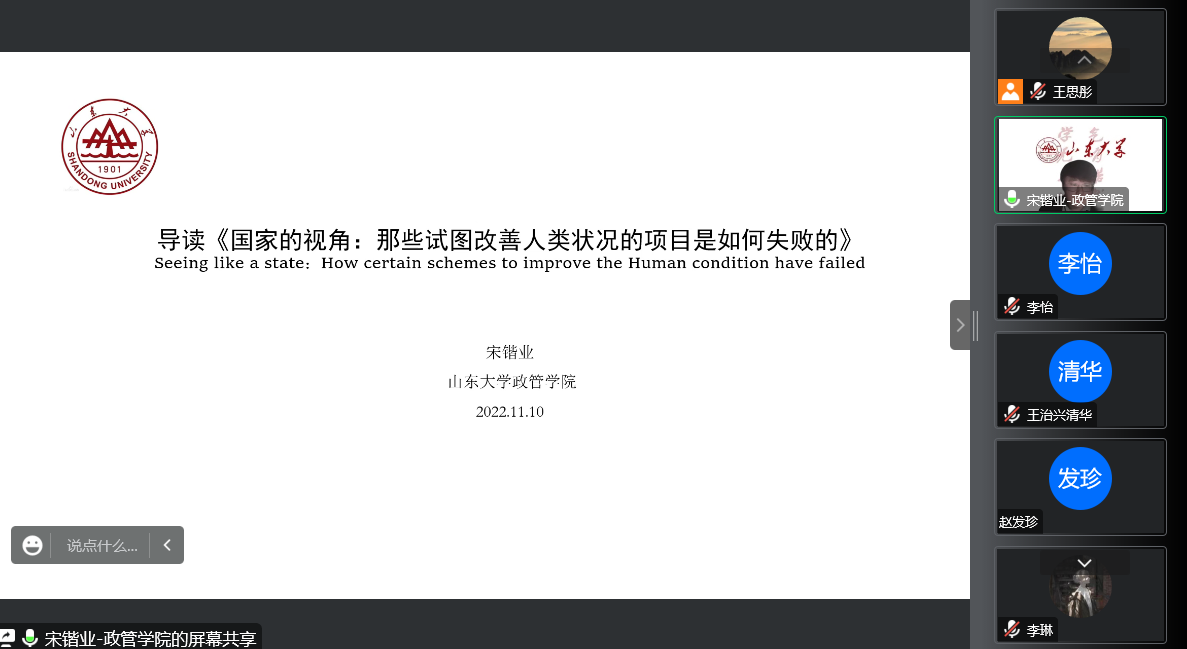 公共管理系本学期第二期“本本优本”读书会于线上举办。本次读书会导读书目为《国家的视角:那些试图改善人类状况的项目是如何失败的》,由足球比分90