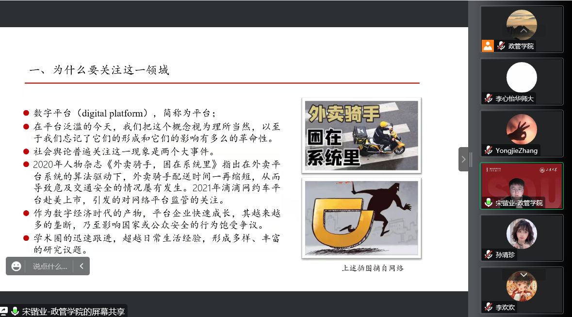 公共管理系本学期第五期望远青年学者沙龙于线上召开,本场讲座主题为:数字平台与公共管理研究想象。讲座由足球比分90