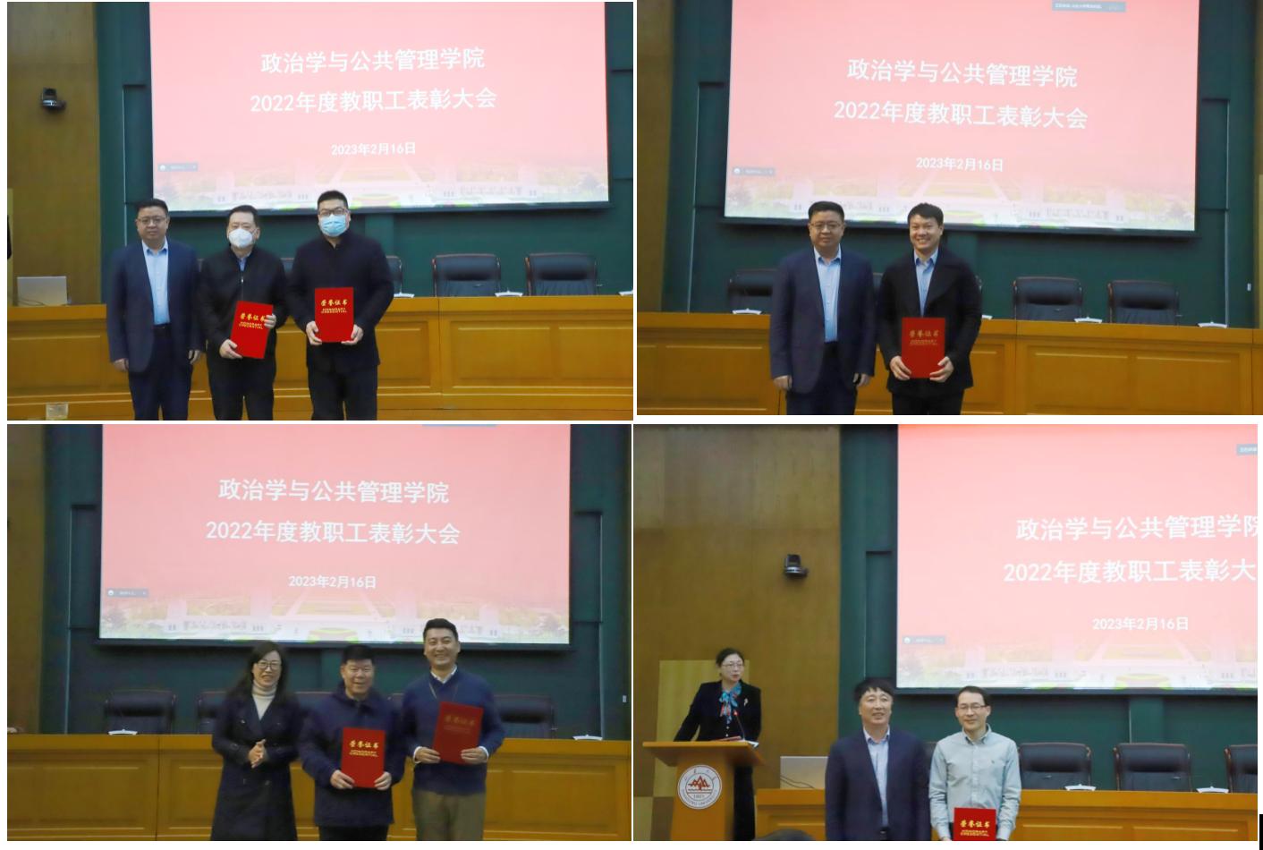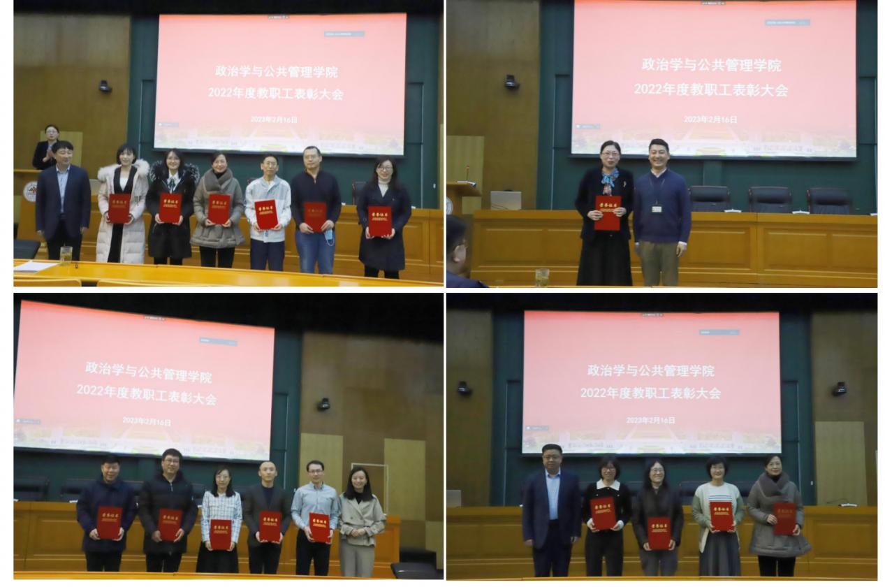 荣誉体系。大会依次颁发了教职工荣誉体系中的优秀共产党员奖、优秀党务工作者奖、优秀教师奖、先进教育工作者奖、科研突出贡献奖、MPA最受欢迎教师奖、MPA最佳教务工作者奖、文体活动突出表现奖及先进基层党组织奖。