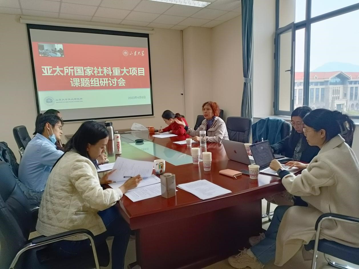 4月6日下午,山东大学亚太研究所国家社科专项基金课题组第三次集体研讨会在青岛校区华岗苑南楼举行。课题组首席专家、亚太研究所所长杨鲁慧教授主持会议,子课题负责人、亚太研究所副所长赵玙佳副教授、副所长钟诚副教授、亚太地区环境与中国周边外交研究中心主任李昕蕾教授和副主任赵婷副教授、亚太经济贸易合作研究中心主任张岩副教授、亚太大国关系与地区安全研究中心主任王鹏权副教授、李国辉博士参加会议。