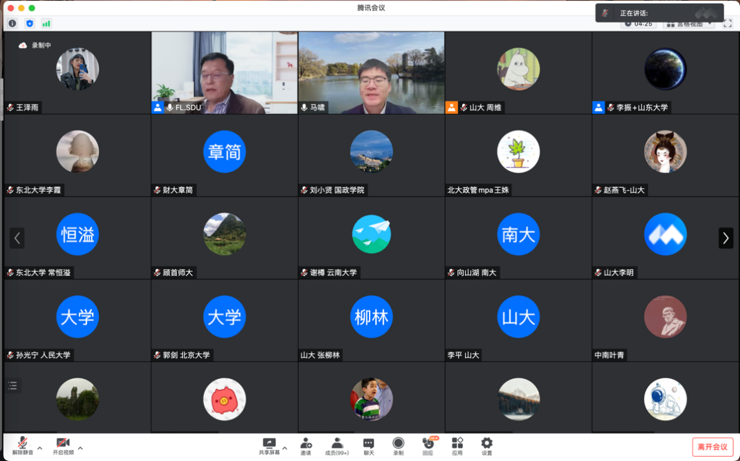 马啸教授主讲,山东大学人文社科青岛研究院院长方雷教授主持讲座。