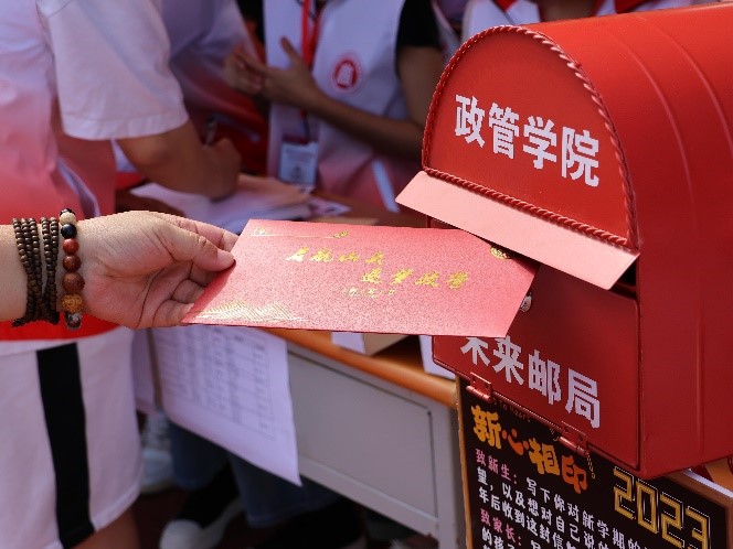 在本次迎新中别出心裁地设置了“写给未来的信”的环节,邀请新同学和家长们各写一封信,由辅导员老师暂存,到中秋节时,刚刚步入新环境的同学们会收到家长的“家书”,感受到亲人的默默关怀与殷殷期望;一年后,同学们还将收到来自过去的信,亲自见证自己一年来的变化与成长。