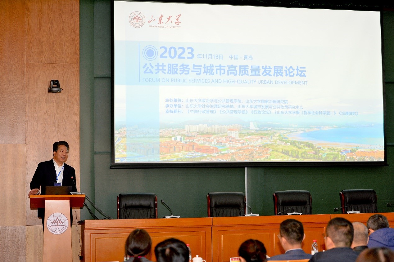 、山东大学国家治理研究院主办,山东大学社会治理研究基地、山东大学城市发展与公共政策研究中心承办的“公共服务与城市高质量发展论坛”在山东大学青岛校区召开。来自中国人民大学、浙江大学、上海交通大学、南开大学、哈尔滨工业大学、同济大学、电子科技大学、大连理工大学、华东政法大学、中南财经政法大学、中国海洋大学、首都师范大学、天津师范大学等单位的专家学者,以及来自期刊界的主编编辑们齐聚一堂,聚焦城市高质量发展的时代使命,探讨公共服务改革与发展的核心议题。