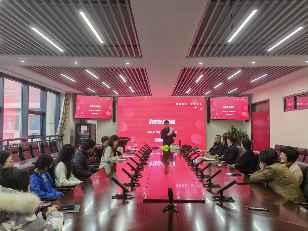 于华岗苑南楼四楼中厅会议室开展教工消防安全培训,青岛校区党工委保卫部段德玺科长、孙垚老师为足球比分90