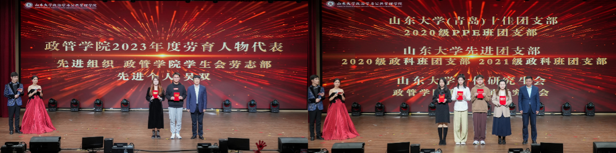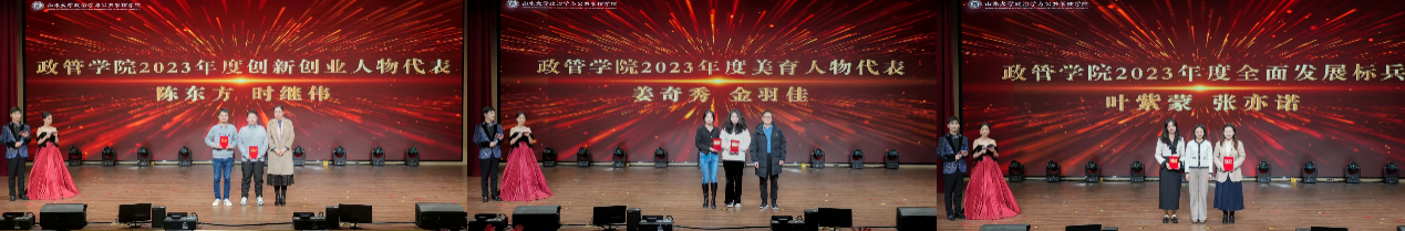 2023年度全面发展标兵、德育人物代表、学业学术人物代表、创新创业人物代表、体育人物代表、美育人物代表、劳育优秀代表、校十佳团支部、校先进团支部、校十佳研究生会等荣誉的获奖代表进行颁奖。
