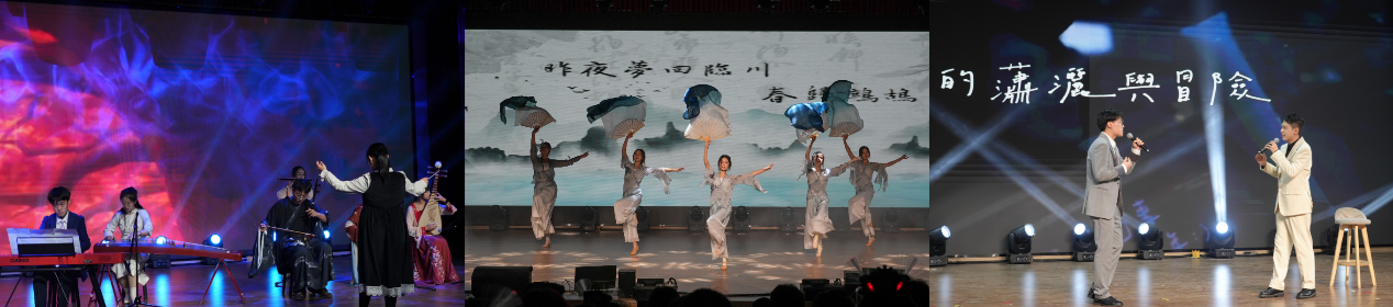 本场晚会共分为“青春:青春盛景,万象启新”“担当:奋楫笃行,赓续华章”“家国:风禾尽起,海晏河清”三个篇章。通过歌曲、舞蹈、器乐演奏、小品、相声、朗诵等丰富的艺术形式,展现我院师生朝气蓬勃的精神风貌和多姿多彩的校园文化生活。在第一篇章中,由公共管理系朱林旭老师带来的歌曲《小酒窝》旋律动人、浪漫温馨;相声《学评书》妙趣横生、令人捧腹大笑;原创歌曲《新心》青春洋溢,点燃全场气氛;舞蹈《山青藏韵》热情豪迈,洁白哈达献给全体老师,美好祝福传递心间,师生互动其乐融融。
