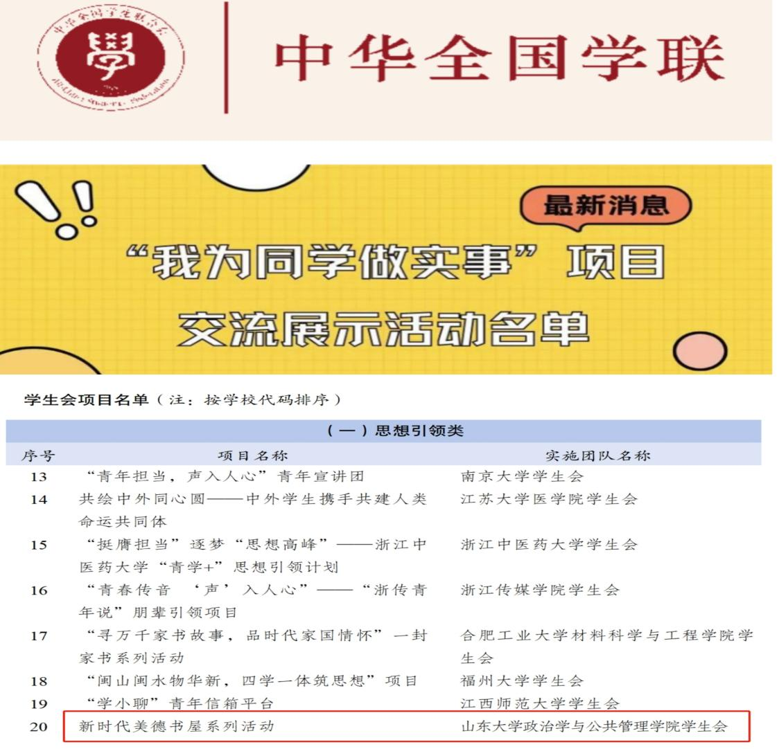 学生会申报的“新时代美德书屋系列活动”成功入选,成为山东大学唯一入选的足球比分90
