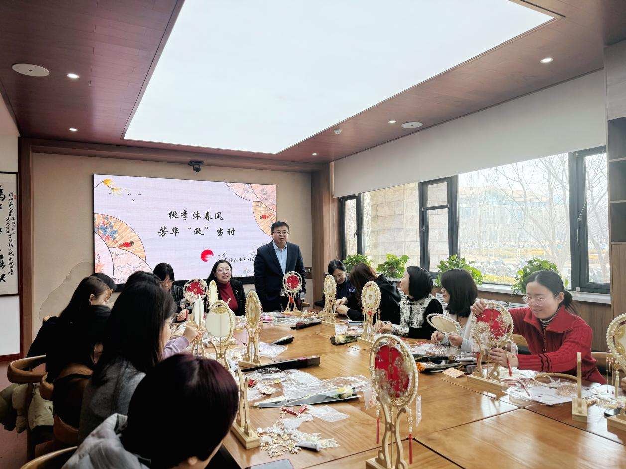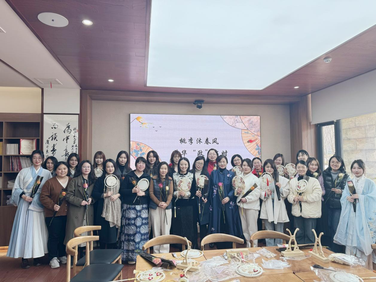 邀请了手作老师讲解团扇相关知识与制作步骤。女教工们通过纯手工沉浸式体验,于现代艺术与传统文化的碰撞中体悟精神上的民俗文化熏陶,享受指尖上的非遗艺术之美。