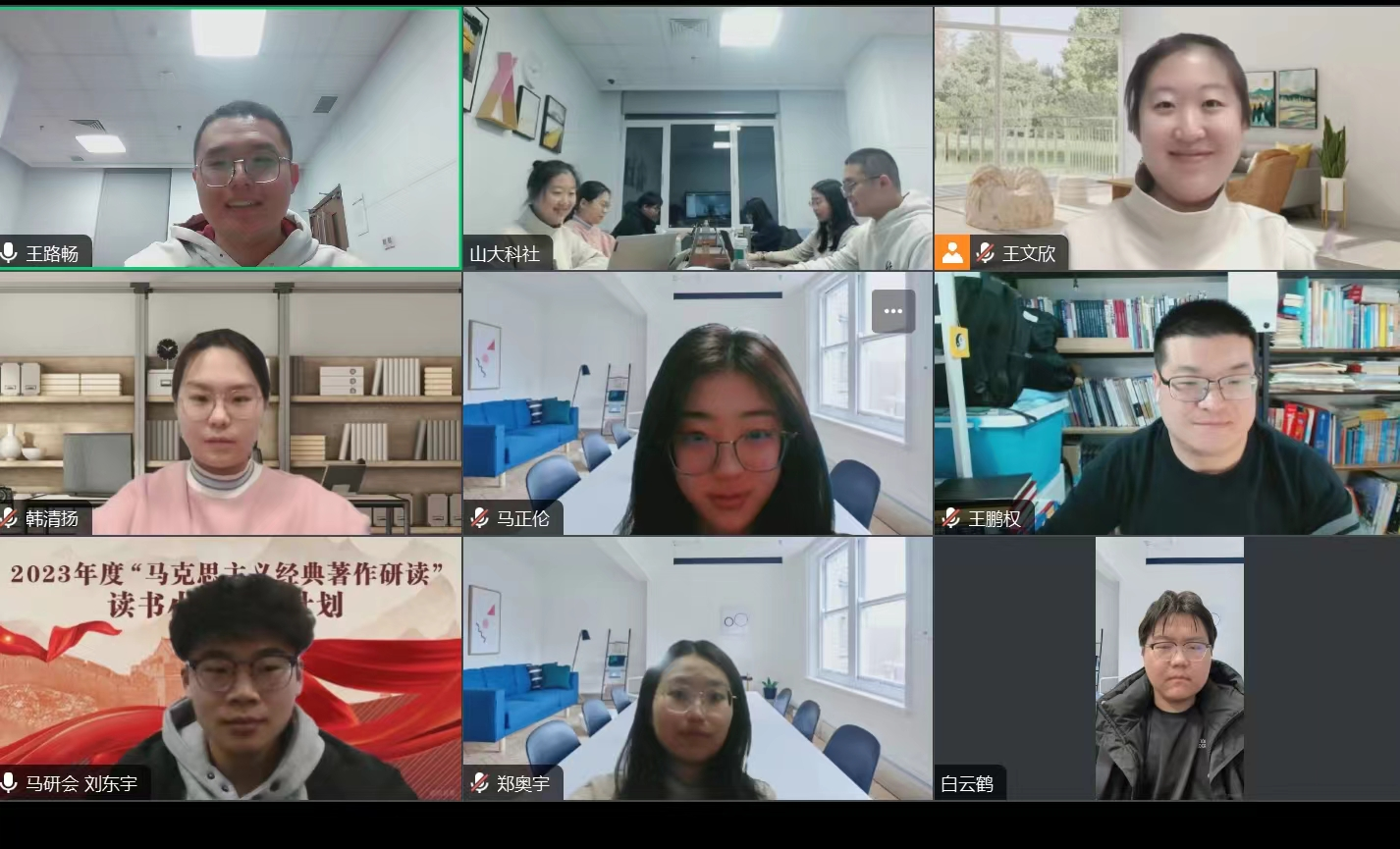 副教授王鹏权老师参加,马研会刘东宇同学进行督导。本次交流讨论会各位组员均进行发言讨论。最后王鹏权老师对本次活动进行点评并就每位同学的发言进行讨论,强调在今后的读书过程中既要着重关注当时的时代背景,设身处地进行思考,又要结合实际发现新的问题、新的答案。本次交流讨论会兼具历史厚度和国际视野,大家受益匪浅。