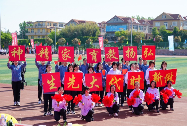 院长马奔、党委书记李海燕的带领下,身着整洁的服装,迈着铿锵有力的步伐,向主席台前走去。方阵代表队意气风发,学生高举“奋力书写为中国式现代化挺膺担当的青春篇章”横幅,用双色花球摆出数字“75”,向新中国成立75周年献礼;教师手持红花和小国旗,展现出政管教师“弘扬教育家精神,争做新时代大先生”的精神风貌。