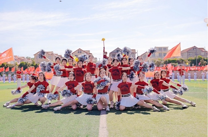 朝气蓬勃的团体操代表队。我院本科和研究生团体操团队用精彩的表演为参赛选手加油,同学们舞动花球,热情洋溢,以“强国有我勇担当”的信念,巧妙运用彩带、飘带、气球等元素,为表演增添了无数亮点,赢得了领导和观众的阵阵喝彩。