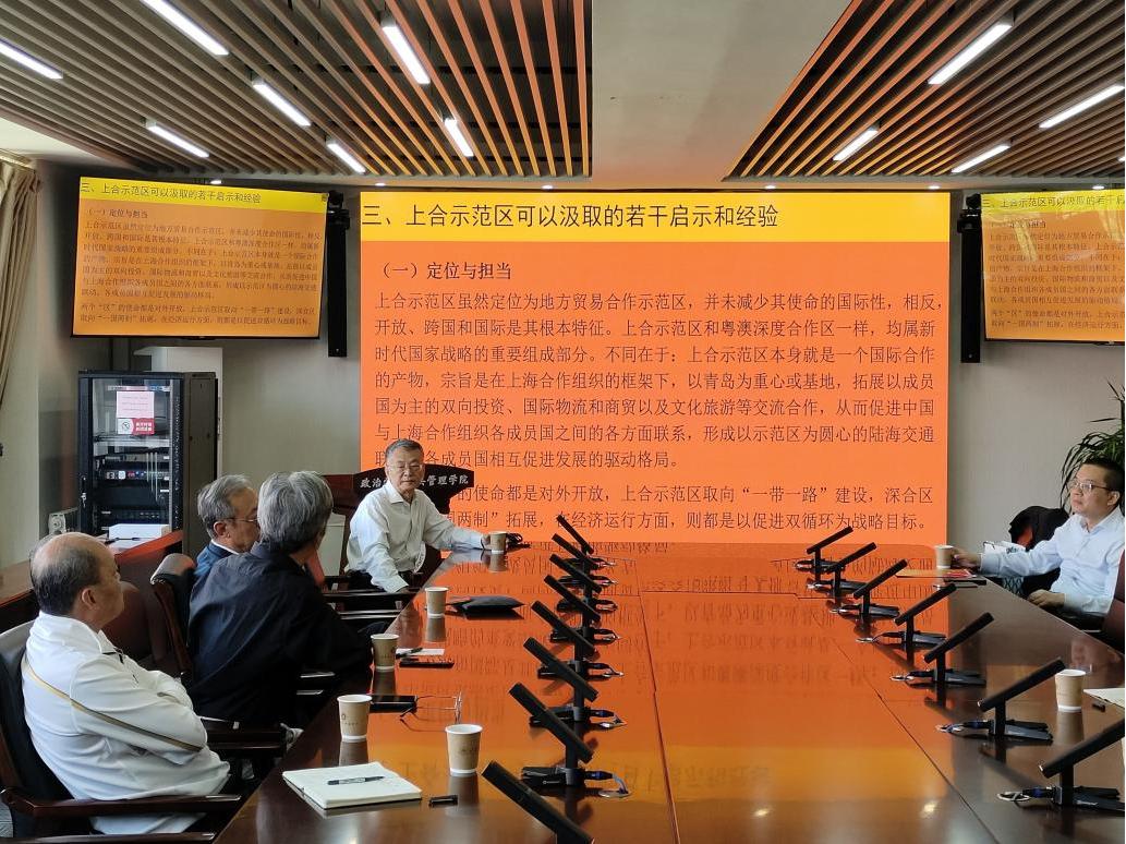 讲座伊始,米健教授首先介绍了粤港澳大湾区的实质与特点,并将其与世界三大湾区进行了比较,之后详细分析了深合区发展的定式、核心以及所面临的难点,最后结合深合区发展过程中所遭遇的困境,从国家战略布局层面,提出了上合示范区可能面临的问题以及可以汲取的经验。盛力教授认为两个新区的发展融合意义重大而深远,米健教授结合自身科研学术经验和政府部门工作经验,为大家带来了理论与实践相结合的精彩讲座。