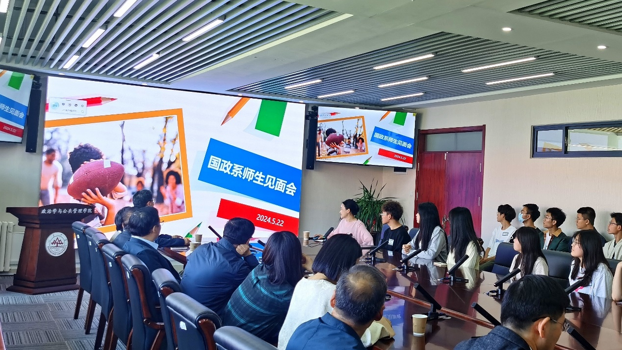 相关师生参加交流会。本次交流会由副院长、国际政治系主任朱贵昌主持。