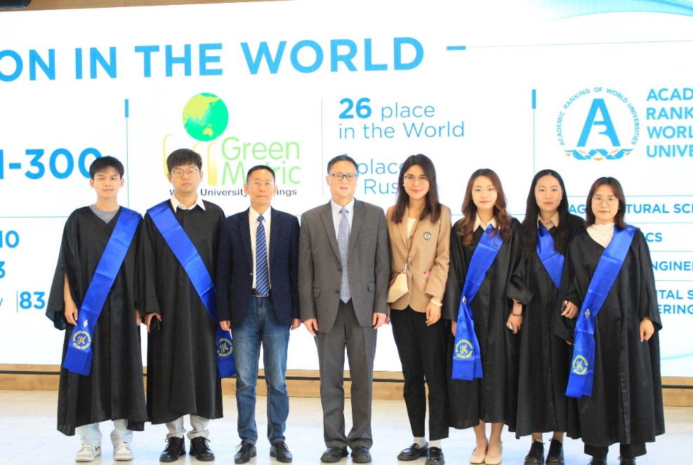 举行的毕业典礼。毕业典礼上,俄罗斯人民友谊大学校长为足球比分90