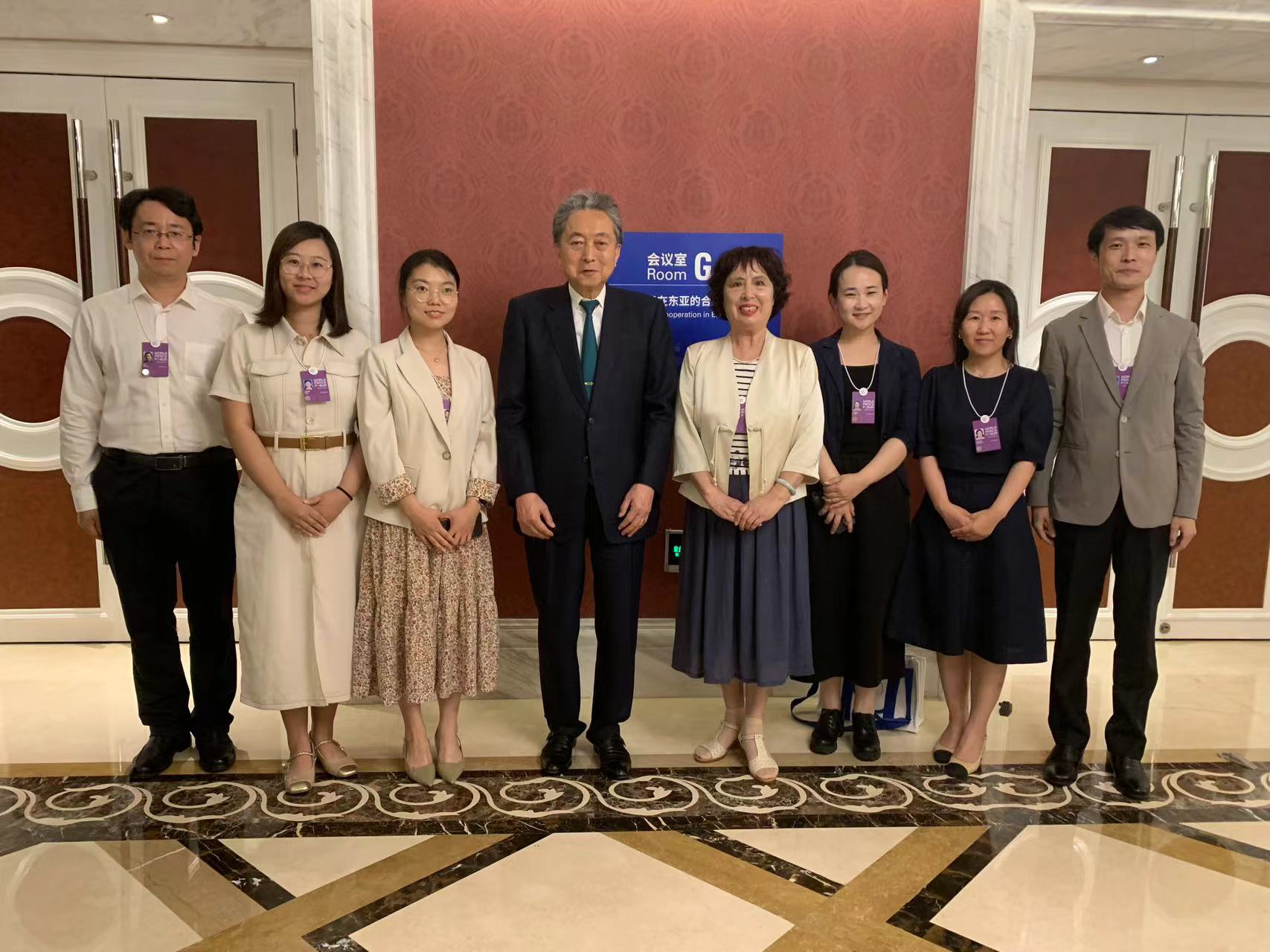 会议期间,日本前首相鸠山由纪夫会见了亚太所代表团成员。杨鲁慧向鸠山先生介绍了山东大学与日本山口大学在青岛校区共同举办中日韩国际学术研讨会的筹备情况,并通报了山东大学即将举办山东论坛高端国际会议,邀请并期待鸠山先生莅临山东大学学术研讨会。鸠山先生表示将关注山东大学的学术会议动态,并就亚太所的重点研究领域与亚太所代表团成员进行了交流探讨。