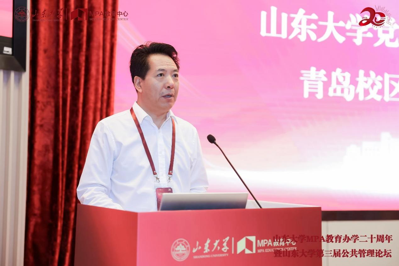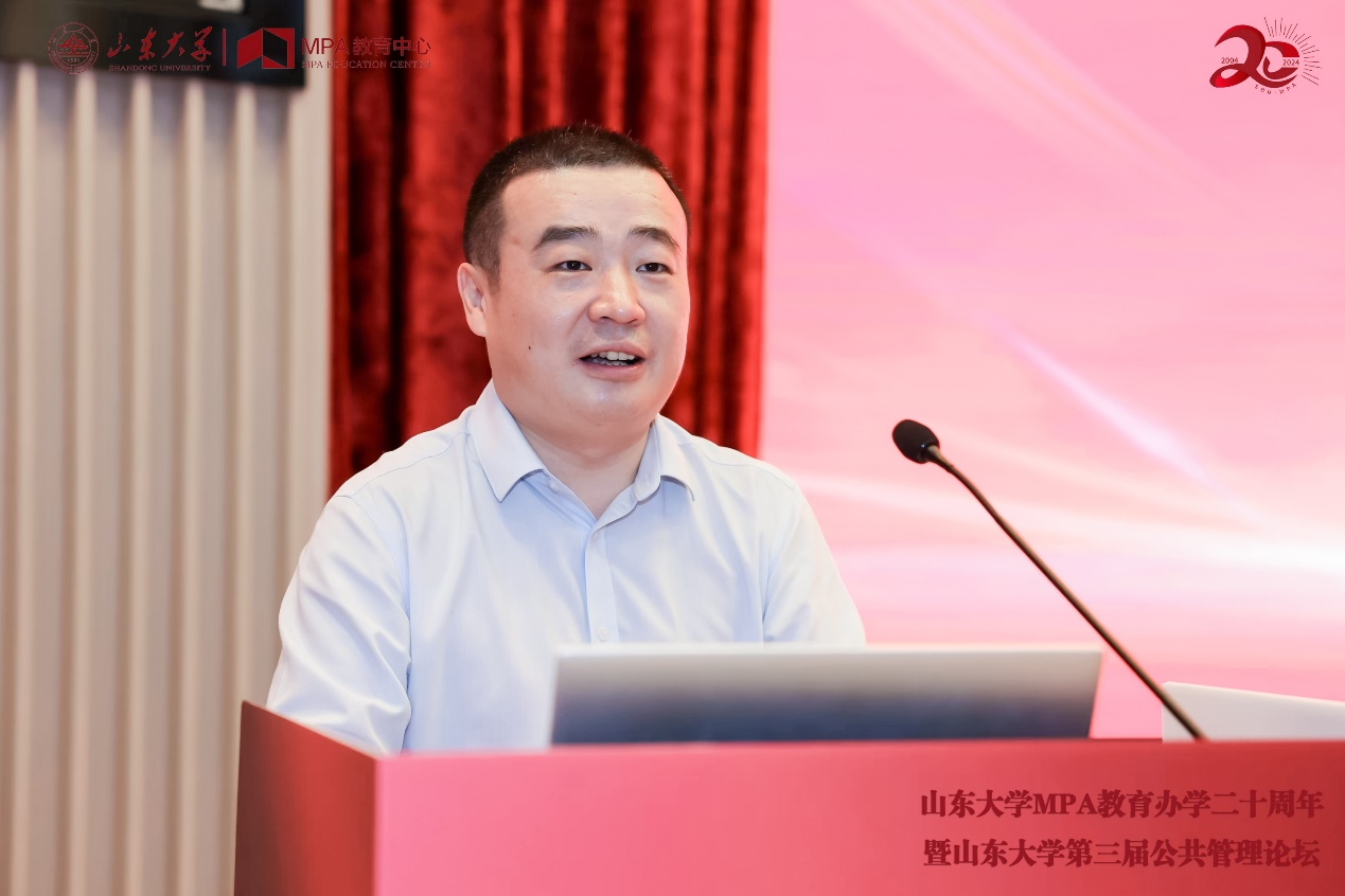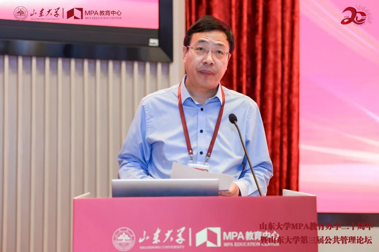 院长谭安奎教授代表兄弟院校发言,他对山东大学MPA教育二十年来取得的突出成绩表示热烈祝贺,并衷心祝愿山大MPA厚植百年根基,续写时代新篇。