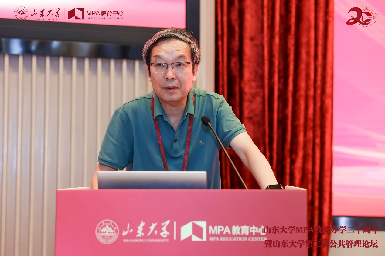 副院长、山东大学MPA教育中心主任孙宗锋教授作《山东大学MPA教育发展报告》,系统梳理了山大MPA二十年来的办学概况和“三三制”人才培养模式的成功经验,并对山东MPA教育未来发展进行展望。