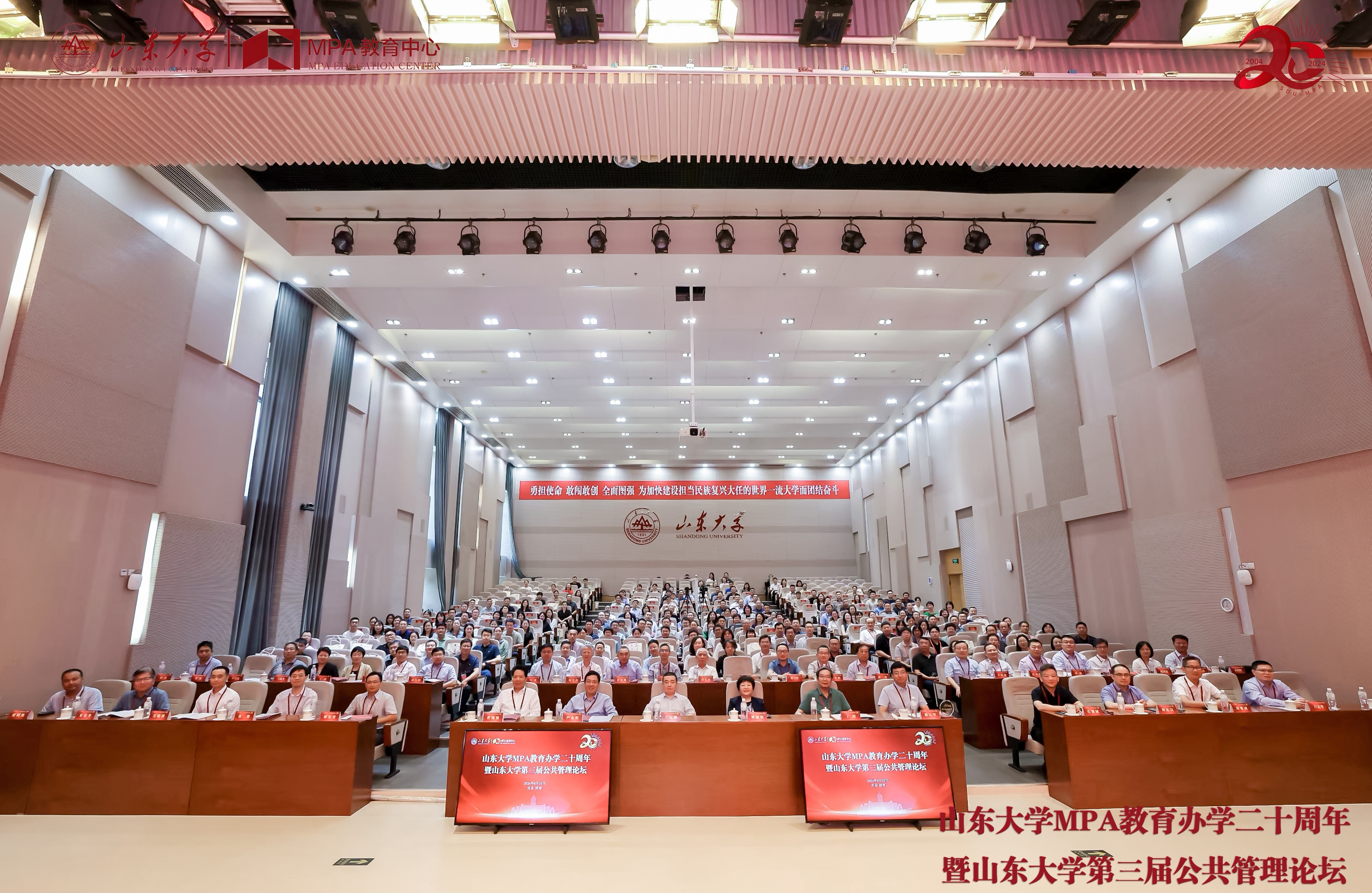 二十载栉风沐雨,崇实求新;二十载砥砺奋进,薪火赓续。山大MPA教育秉承山东大学“为天下储人才,为国家图富强”的办学宗旨,践行“学无止境,气有浩然”的校训精神,在人才培养、科学研究、案例大赛和社会服务等领域取得一系列突出成绩。山东大学MPA教育办学二十周年暨山东大学第三届公共管理论坛的成功举办,不仅是山东大学MPA教育成果的集中展示,更为进一步推动MPA教育事业和公共管理学科高质量发展搭建了交流平台。立足新时代、站在新起点,山东大学MPA教育将勇担新使命、展现新作为,为推进强国建设、民族复兴,培养更多堪当时代重任的卓越公共管理领导者!